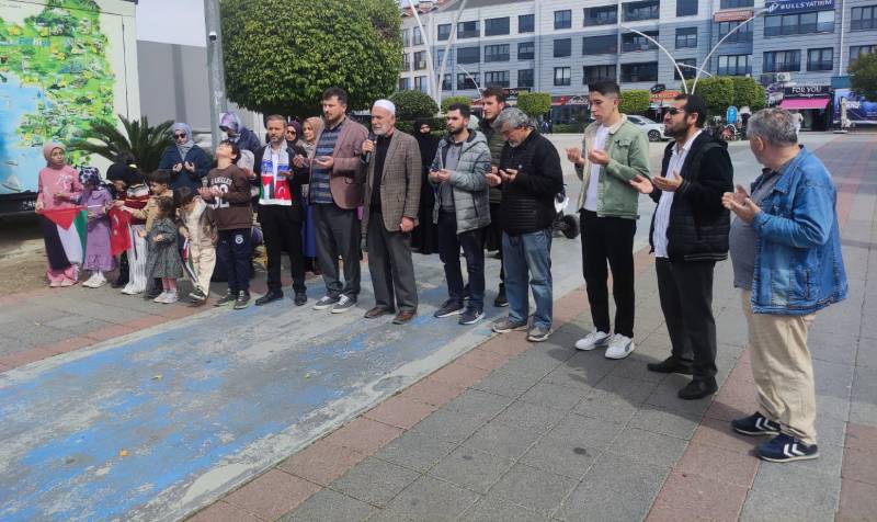 Çocuk katili İsrail’in yanında olmayın. Ortadoğu’yu kan gönlüne çeviren demokrasi vaadiyle girdiği her yere ölüm götüren ABD emperyalizminin ve onun kurduğu adaletsiz dünya düzeninin bedelini en ağır bir şekilde çocuklar ödemektedir. Buradan ilan ediyoruz ki; bütün zalimlere lanet olsun” dedi.