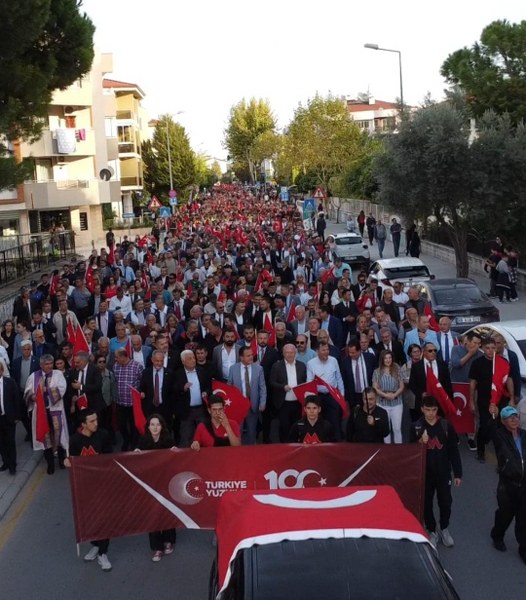 Muğla’da Valilik öncülüğü ile “Cumhuriyet Yürüyüşü” gerçekleştirildi. Cumhuriyetin kuruluşunun 100. yıl dönümü etkinlikleri kapsamında “Cumhuriyet Yürüyüşü” yaklaşık 10 bin kişinin katılımıyla coşkuyla gerçekleştirildi. Cumhuriyet meydanından başlayan yürüyüşe Muğla Valisi İdris Akbıyık, il protokolü, siyasi parti temsilcileri, sivil toplum kuruluşu temsilcileri, öğrenciler ile çok sayıda vatandaş katıldı. Yürüyüş bitiminde Aksaz Deniz Üs Komutanlığı Bandosu, çeşitli marşları seslendirirken, vatandaşlar da marşlara coşku ile eşlik etti.